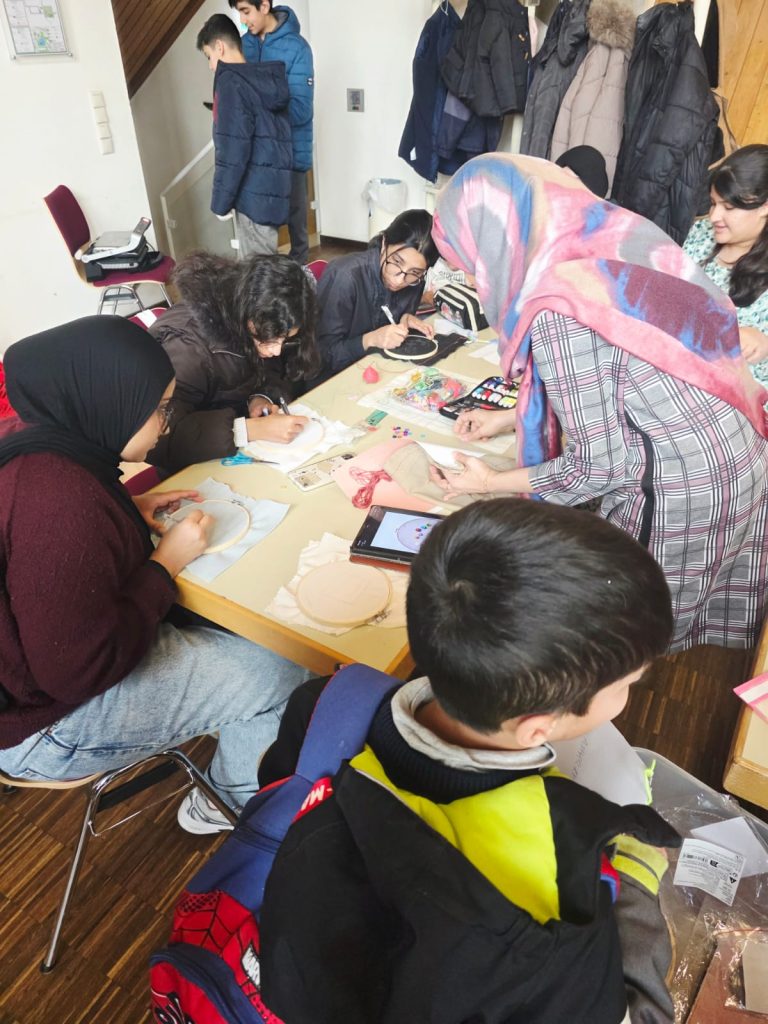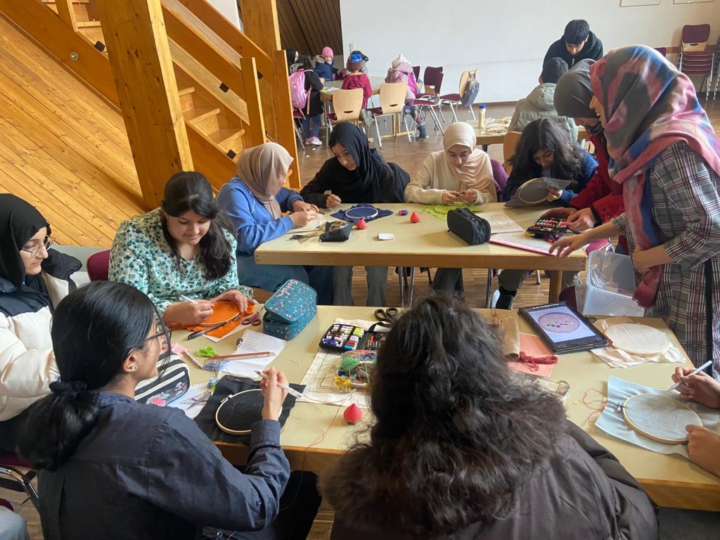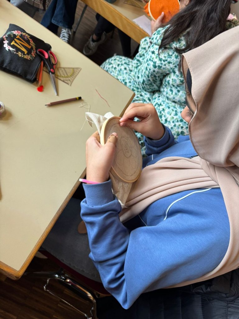 Die erste Stickstunde war ein voller Erfolg! Die Kinder tauchten begeistert in die Welt der Textilkunst ein und entdeckten, wie viel Freude Nadel und Faden bereiten können. Vom kniffligen Einfädeln der Nadel bis hin zum Erlernen des Vorstichs und Rückstichs gewannen unsere jungen Kreativen mit jeder Bewegung mehr Sicherheit.